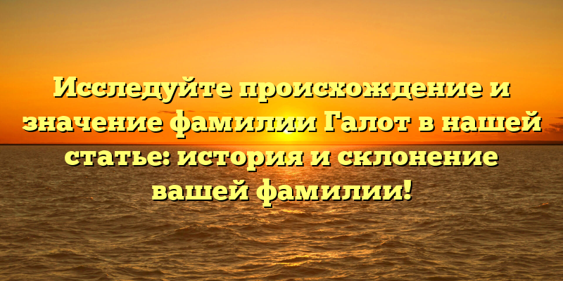- Откройте тайны происхождения фамилии Галот и узнайте все о ее значениях и склонениях в нашей исторической статье!