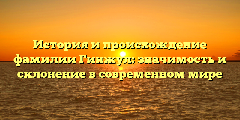 В данной статье мы расскажем о происхождении фамилии Гинжул и ее значимости в истории. Также будут рассмотрены интересные факты, связанные с этой фамилией, а также способы склонения в современном мире. Все эти сведения помогут более полно понять эту фамилию и ее значения.