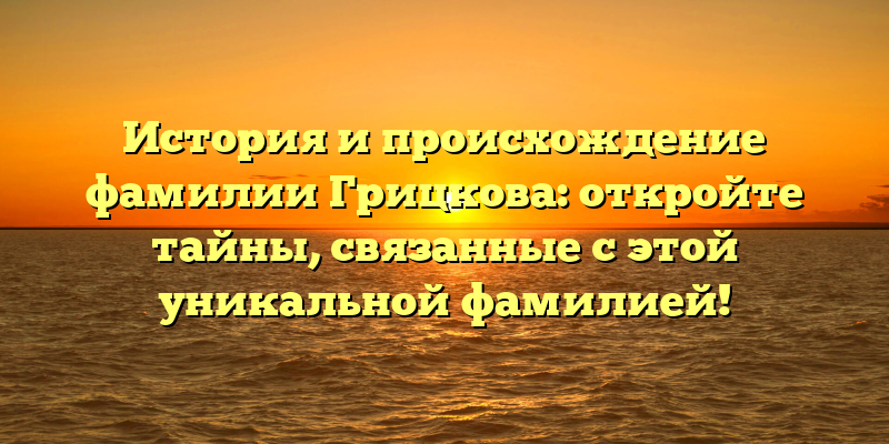- Раскрываем тайны и происхождение фамилии Грицкова: история уникальной фамилии в деталях