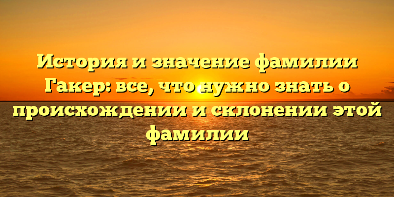 - Фамилия Гакер: история происхождения и значения, познакомьтесь с ее склонением и значением в современном мире