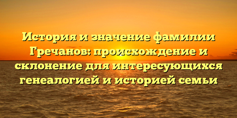 Фамилия Гречанов имеет ряд форм склонения. Так, в родительном падеже ее следует написать как Гречанова, в дательном – Гречанову, в винительном – Гречанова, в творительном – Гречановым, в предложном – о Гречанове. Это важно знать для тех, кто занимается изучением генеалогии и истории семьи.