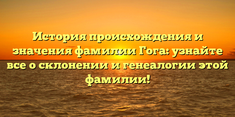 Если вы являетесь представителем фамилии Гога, то вы, безусловно, заинтересуетесь детальной информацией о происхождении и генеалогии своей родовой линии. В нашей статье мы подробно расскажем об этом и многое другое. Узнайте все о склонении и значениях фамилии Гога!