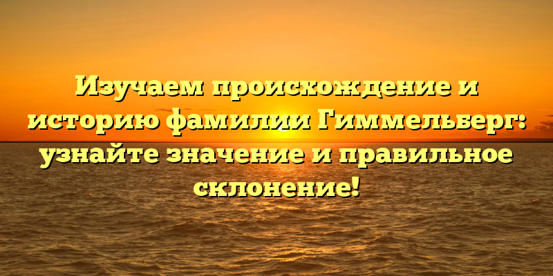 Каждая фамилия имеет интересную и уникальную историю. Одна из таких фамилий — Гиммельберг. В данной статье мы расскажем об истории этой фамилии, ее происхождении и правильном склонении.