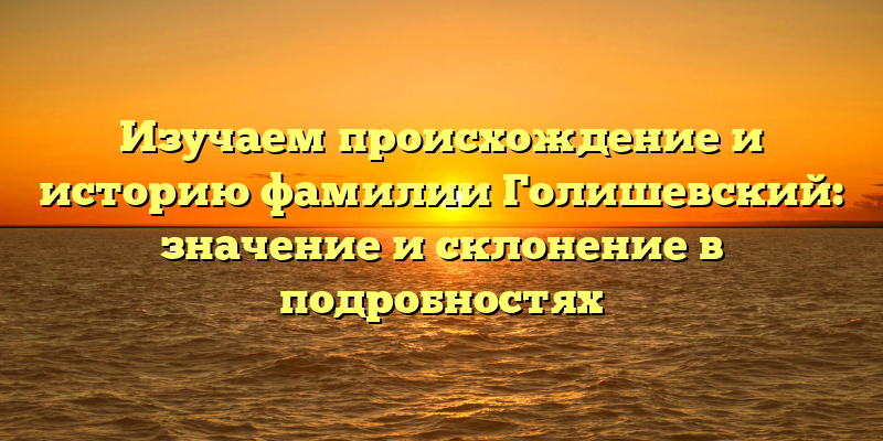 Голишевский: происхождение, значение и история фамилии — все, что нужно знать.
