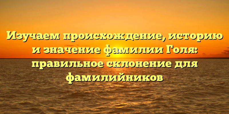 Разбираемся в происхождении и истории фамилии Голя: правильное склонение для всех Голя и Голяков