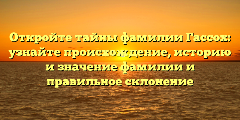 Исследуйте тайны фамилии Гассох: происхождение, история и значение фамилии, а также ее правильное склонение