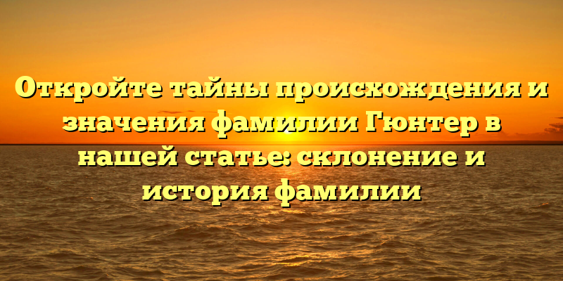 Мы расскажем об истории фамилии Гюнтер, проанализируем склонение ее различных форм и посмотрим, какие интересные факты и мифы связаны с этим именем. У нас есть много увлекательных историй, которые помогут вам лучше понять эту фамилию и ее значения. Не упустите возможность найти своих предков или просто получить знания на тему фамилии Гюнтер!