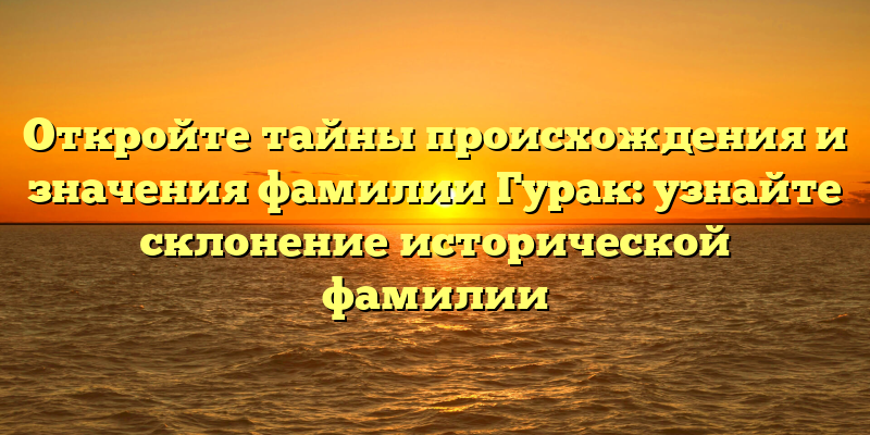 История фамилии Гурак: раскрытие тайн происхождения, значения и склонения этой уникальной фамилии