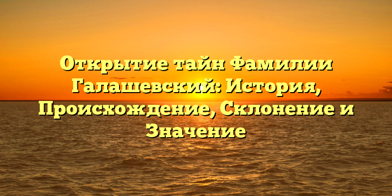 - Раскрытие тайн Фамилии Галашевский: Полная история происхождения, правильное склонение и значение