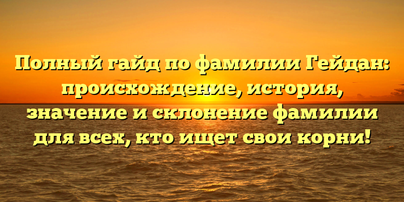 Откройте тайны происхождения, значения и склонения фамилии Гейдан в нашем полном гайде для искателей своих корней!
