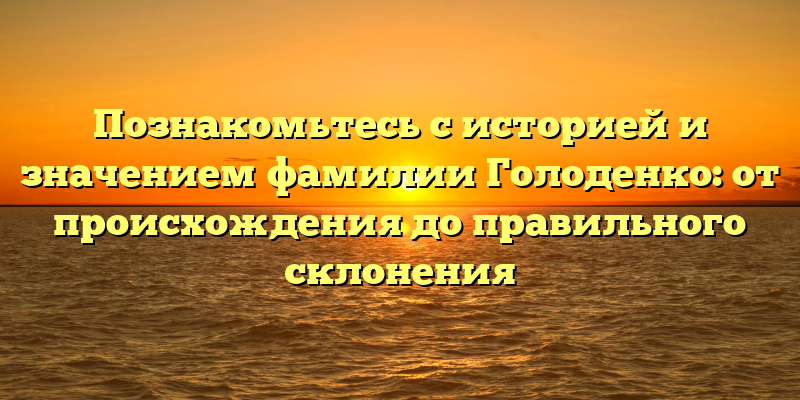 В этой статье, мы поговорим о происхождении, значении и правильном склонении фамилии Голоденко. Надеемся, что наша работа поможет вам более глубоко понять свое родное имя и быть точнее в общении с людьми.