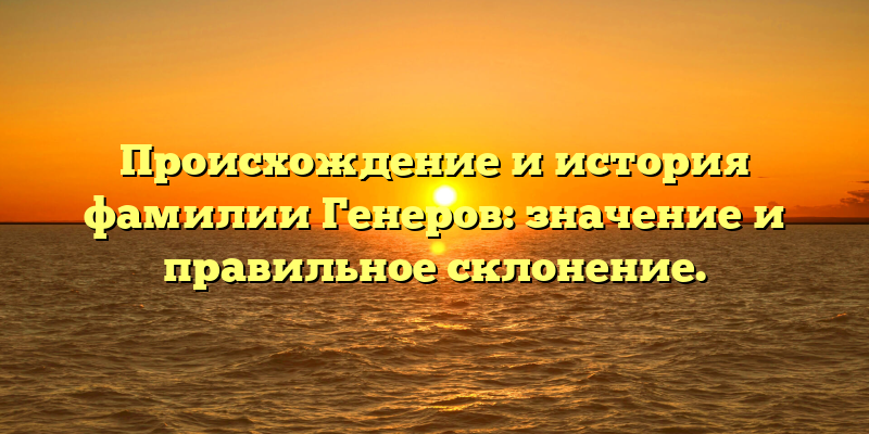- Рассмотрим происхождение фамилии Генеров и правильное ее склонение: история и значения