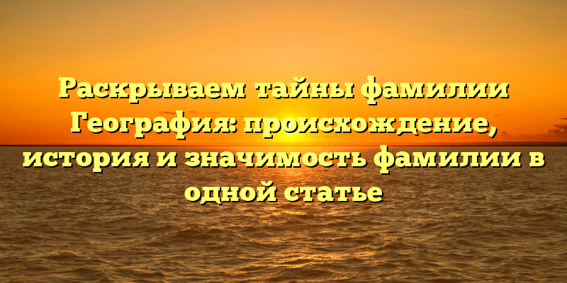 Фамилия География — одна из самых необычных и редких фамилий, которую можно встретить в нашей стране. Сегодня мы разберемся, каково происхождение этой фамилии, из каких элементов она состоит и что означает для тех, кто ее носит.