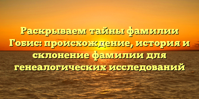 - Генеалогический квест: Раскрытие тайн фамилии Гобис — от происхождения до склонения.