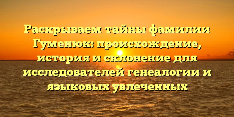 - Глубоко копаемся в происхождении фамилии Гуменюк: история и склонение для генеалогов и языковых любителей.