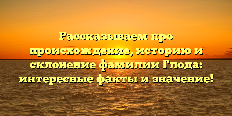В этой статье мы рассказываем о происхождении, истории и склонении фамилии Глода в России. Она имеет множество вариантов написания и подвергалась изменениям на протяжении истории. Кроме того, мы изучили интересные факты о людях, носящих эту фамилию, и о значении слова «глода».
