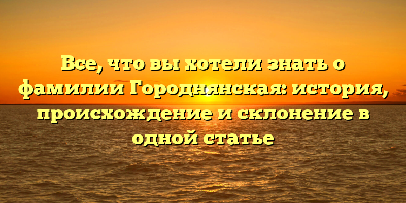 Фамилия Городнянская: история, происхождение и склонение — полное руководство