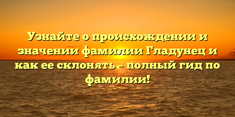 - Раскрываем тайны фамилии Гладунец: происхождение, значение и правильное склонение — все, что нужно знать!
