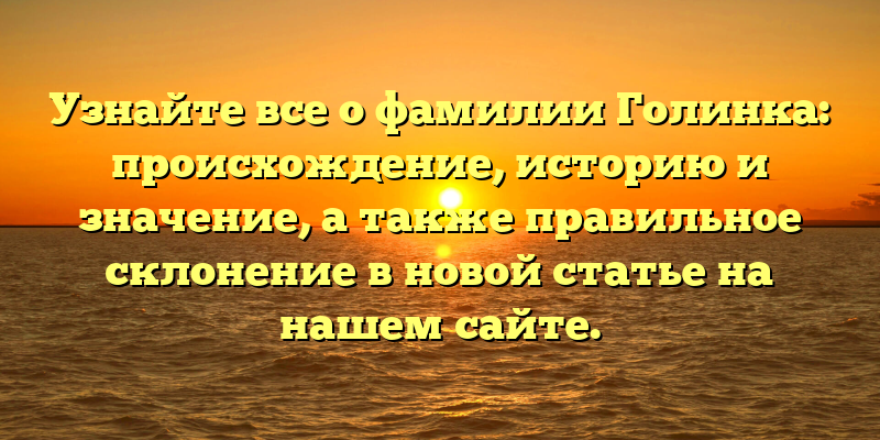 - Исследуйте историю и значение фамилии Голинка, и узнайте о правильном склонении в нашей новой статье.
