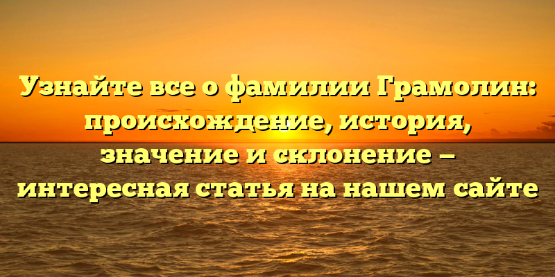 Если вы хотите узнать больше о происхождении истории фамилии Грамолин, то эта статья — идеальное место для начала