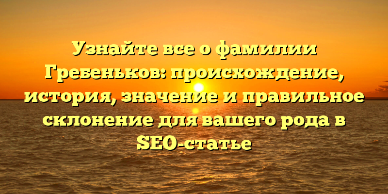 - Фамилия Гребеньков: все, что нужно знать о происхождении, истории, значении и правильном склонении!
