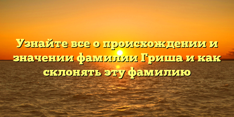 Фамилия Гриша является одной из самых известных и распространенных в России. Но, как и многие другие фамилии, ее происхождение и значение многим остаются неизвестными. Если вы хотите узнать все об этой фамилии — вы попали по адресу! В этой статье мы расскажем вам о происхождении и значении фамилии Гриша, а также о том, как правильно склонять эту фамилию.