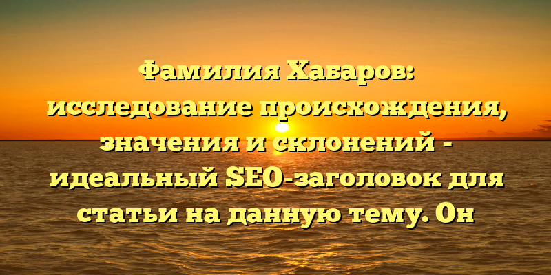 Заголовок «Фамилия Хабаров: исследование происхождения, значения и склонений» — идеальный SEO-заголовок для данной статьи. Он позволяет читателю легко понять о чем будет речь в статье и найти ее с помощью ключевых слов. Такой заголовок привлечет целевую аудиторию и повысит вероятность того, что статья будет найдена и прочитана.