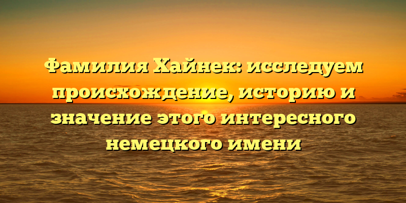 Путешествие в историю: происхождение и значение фамилии Хайнек