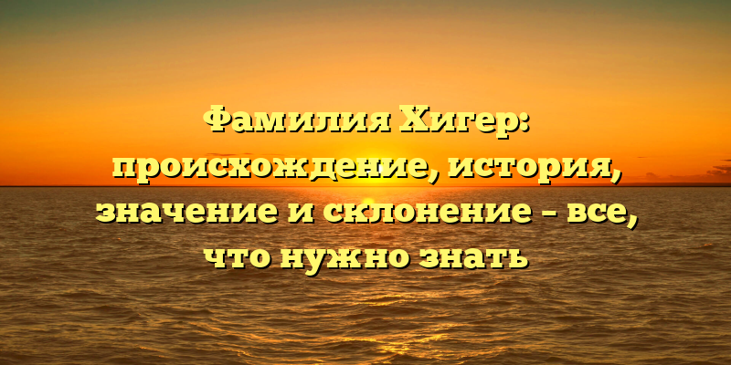 - Фамилия Хигер: возникновение, история, значение и склонение — полное руководство