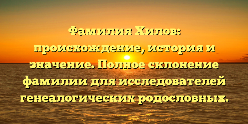 - Отследите свои корни: исследуйте происхождение и значение фамилии Хилов с полным склонением для генеалогических родословных