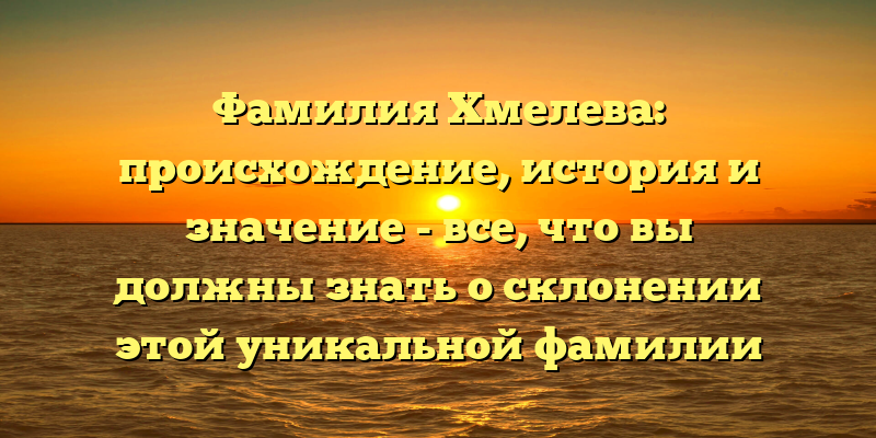 Каждая фамилия имеет свою историю, которая может рассказать много интересного о прошлом и настоящем её носителей. В этой статье мы расскажем об одной из уникальных фамилий — Хмелева.