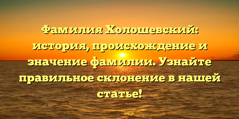- Фамилия Холошевский: происхождение, история и правильное склонение — все, что вам нужно знать!