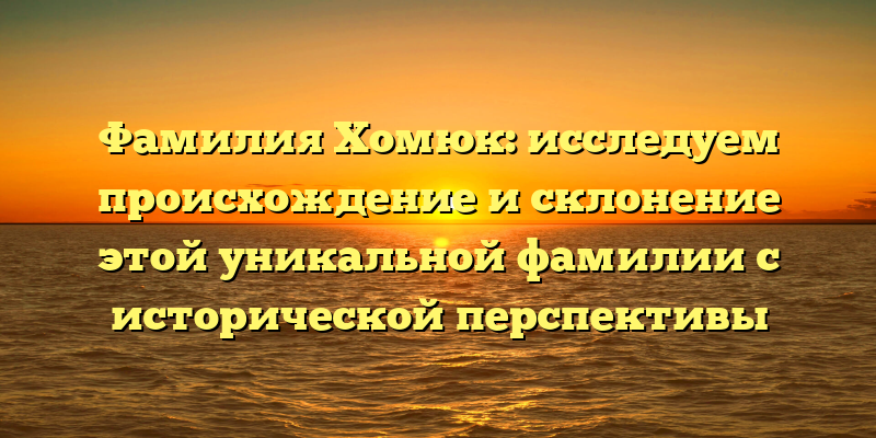 Отследим корни фамилии Хомюк: исследование происхождения и склонения от исторической точки зрения.