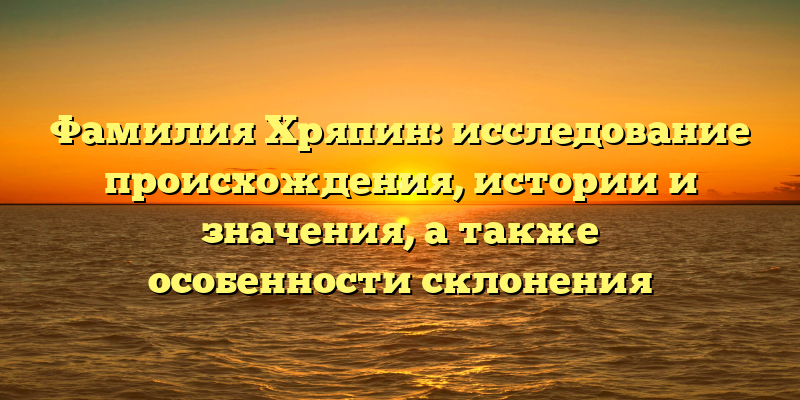 - Открытие секретов фамилии Хряпин: исследование происхождения, истории, значения и правила склонения