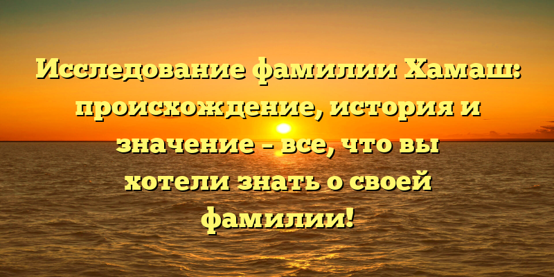 Откройте тайны своей фамилии Хамаш: история, происхождение и значение в нашем исследовании!
