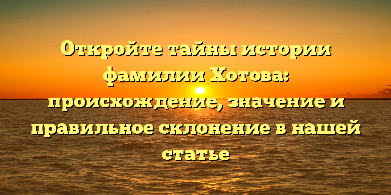 - Изучаем происхождение и значение фамилии Хотова: тайны, которые вы никогда раньше не знали!