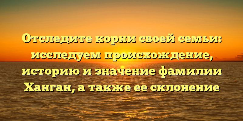 - Изучение и происхождение фамилии Ханган: откройте для себя свои корни с помощью нашего подробного рассказа и склонения