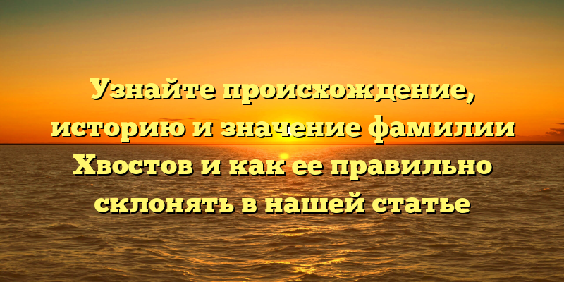 В этой статье вы узнаете, как написать фамилию Хвостов правильно и склонять ее в соответствии с правилами русского языка. Также вы узнаете интересные факты об этой фамилии и ее истории.