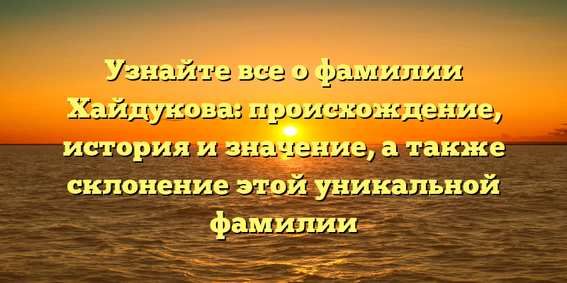 - Раскрываем тайны фамилии Хайдукова: происхождение, история и значимость, а также особенности склонения этого редкого рода