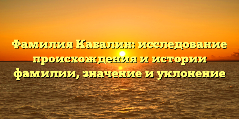 - Фамилия Кабалин: история происхождения, значение и уникальные особенности