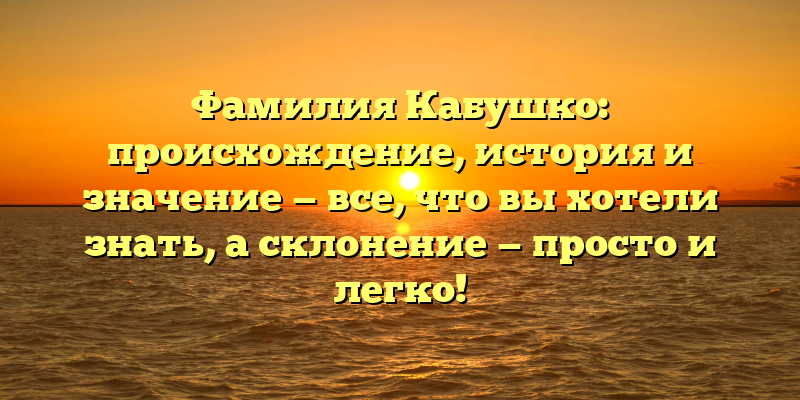 - Фамилия Кабушко: история происхождения и значение, плюс легкий гайд по склонению