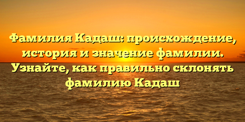 - Фамилия Кадаш: происхождение, история и значение. Как правильно склонять фамилию Кадаш и почему это важно?