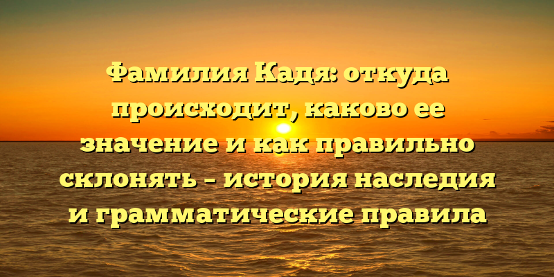 Фамилия Кадя, безусловно, вызывает вопросы у тех, кто сталкивается с ней впервые. Откуда происходит этот редкий человеческий атрибут, каким является значение этой фамилии и как правильно ее склонять – все эти вопросы заслуживают внимания. В этой статье мы рассмотрим историю происхождения фамилии Кадя, ее значение и наиболее часто встречающиеся правила ее склонения.