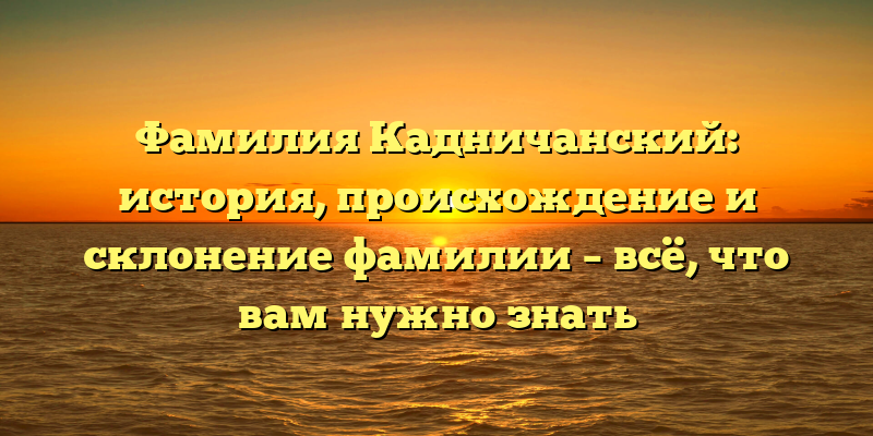 - История и происхождение фамилии Кадничанский: полное руководство по склонению и значению фамилии