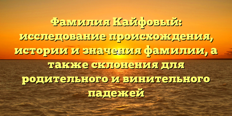 - Рассказываем об истории и значении фамилии Кайфовый: исследование происхождения и склонения для родительного и винительного падежей