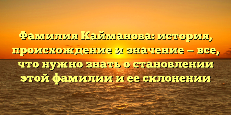 - Фамилия Кайманова: исследуем происхождение, историю и значение этой фамилии и погружаемся в ее разнообразные оттенки