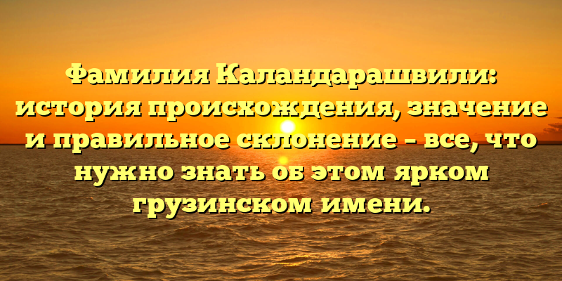 - Каландарашвили: происхождение, значение и склонение — ваш гид по этому уникальному грузинскому имени.