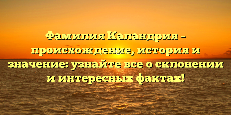 Фамилия Каландрия: история и происхождение, интересные факты и правила склонения — полная информация для любопытных!