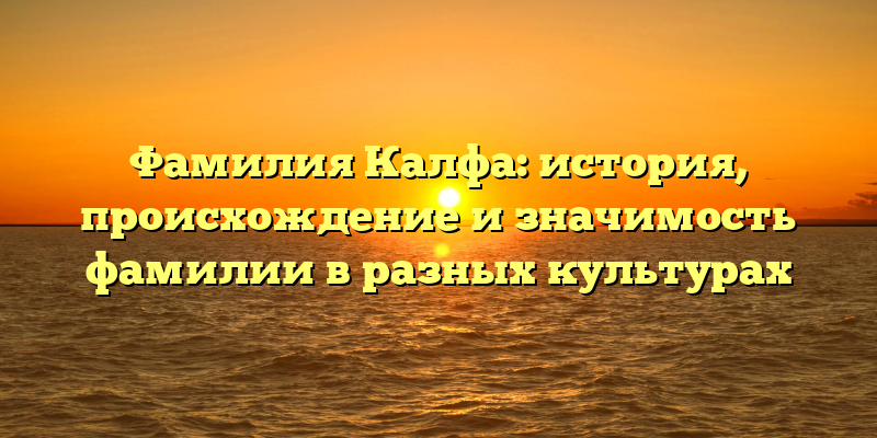 - От корней до современности: история и значения фамилии Калфа в разных культурах
