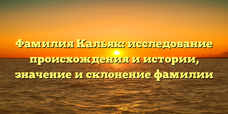 От родства до происхождения: полное исследование фамилии Кальяк и ее истории в контексте современности.